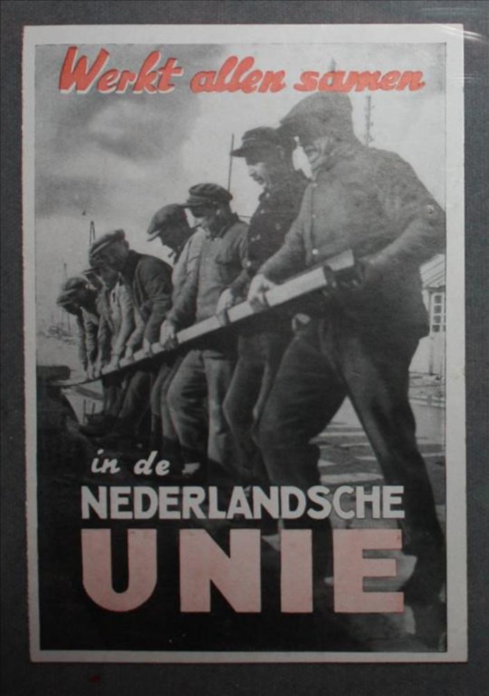 Ansichtkaart van het affiche “Werkt Allen Samen”