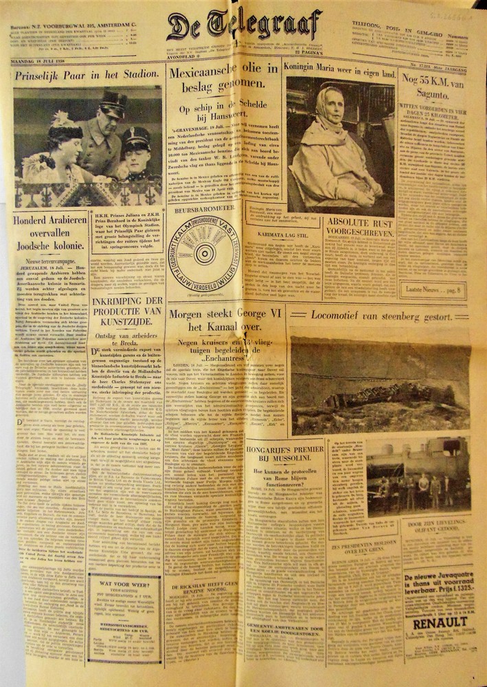 "De Telegraaf" van "Maandag 18 juli 1938" "Avondblad...