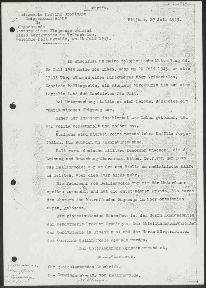 Proces-verbaal Gendarmerie Provinz Groningen Gruppek...