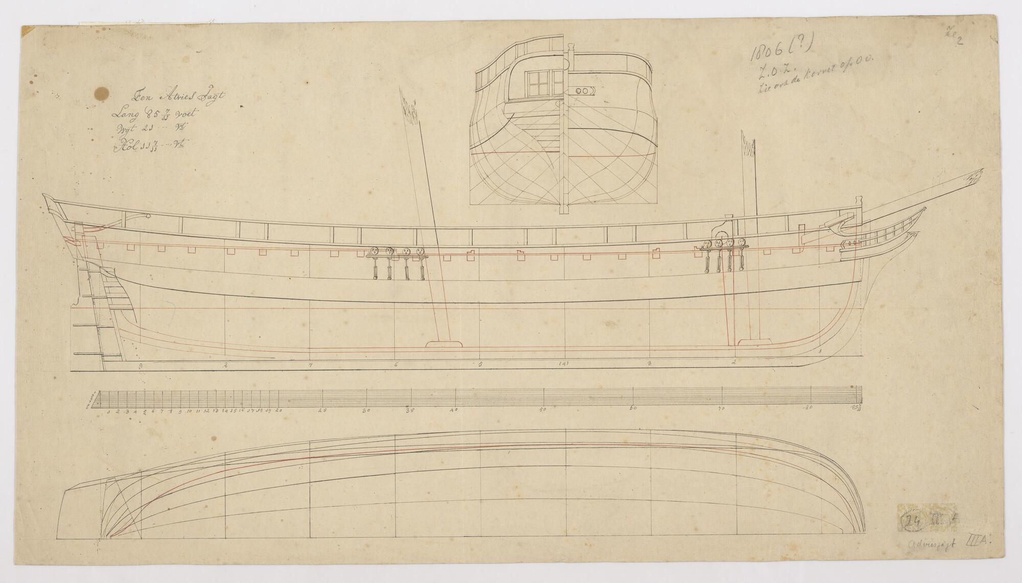 Lijnenplan van een adviesjacht
