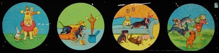 Lantaarnplaat met komische honden