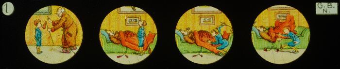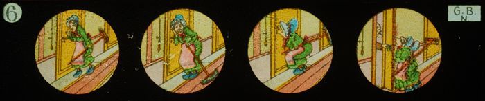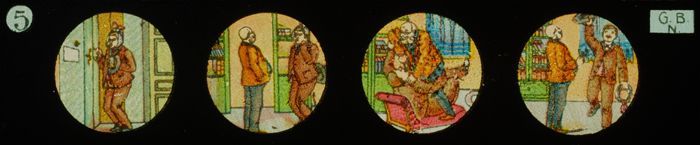 Lantaarnplaat met komisch verhaaltje