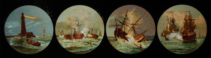 Lantaarnplaat met vier zeegezichten