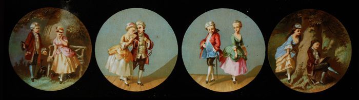 Lantaarnplaat met kok, koksmaatje en jongens en meis...