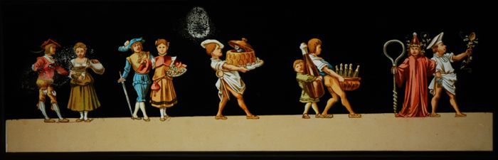 Lantaarnplaat met rattenvanger van Hamelen met kinderen