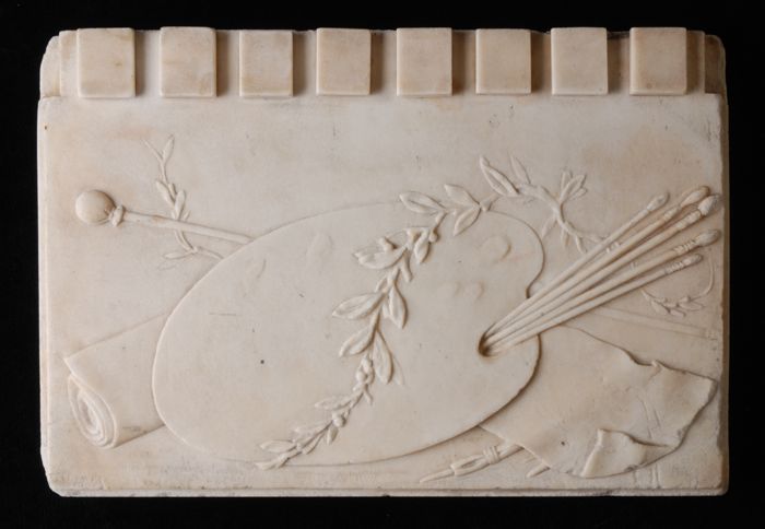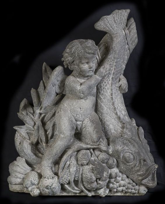 Getoogd zinken reliëf boven de deuren van de Zeevism...
