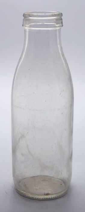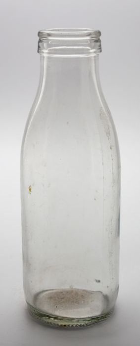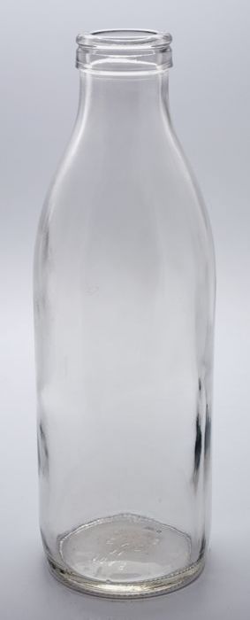Glazen melkfles voor een liter gepasteuriseerde melk...
