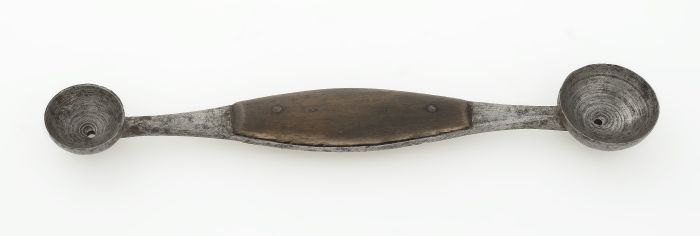 Balsteker, twee kleine metalen halve bollen van vers...
