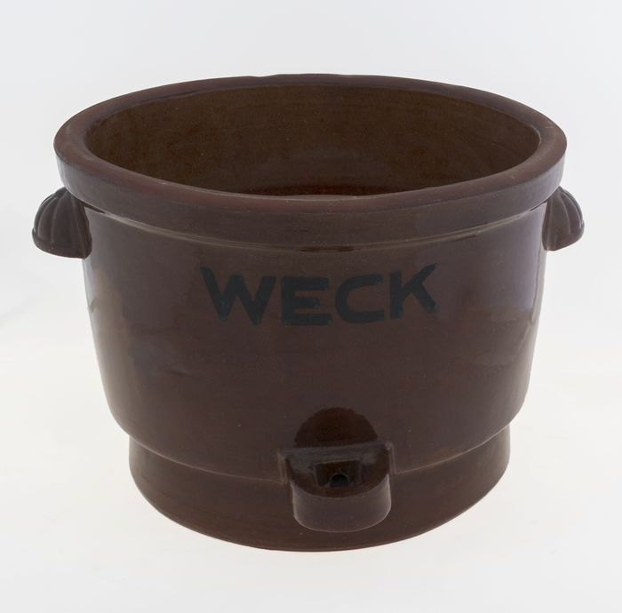 Bruin geëmailleerde aardewerken weckpot