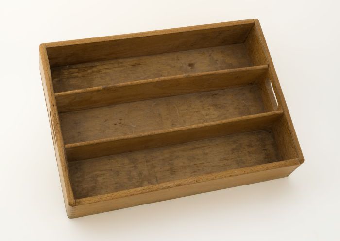Beukenhouten bestekbak met drie vakken en twee handg...
