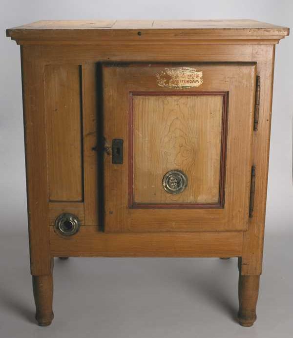 IJskast bestaand uit zinken bak in houten kast en me...