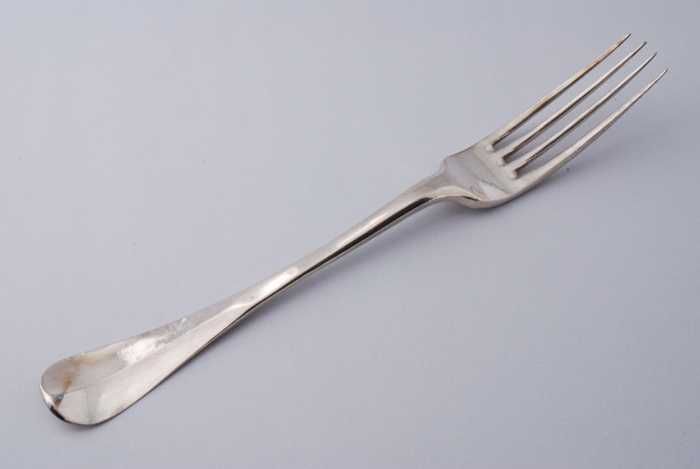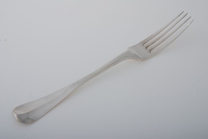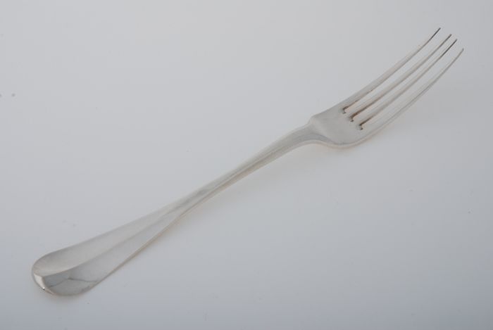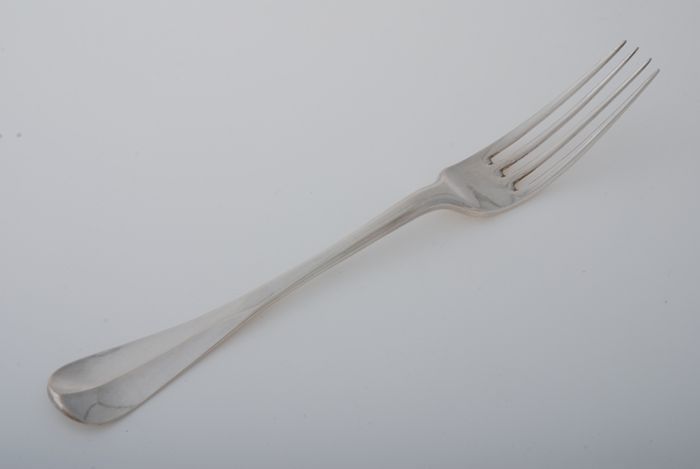 Zilveren vork met vier tanden
