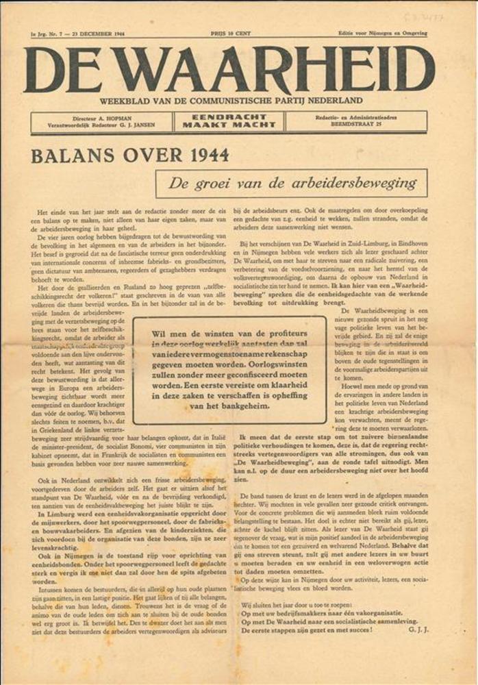 De Waarheid, editie voor Nijmegen en Omgeving, 1e Ja...