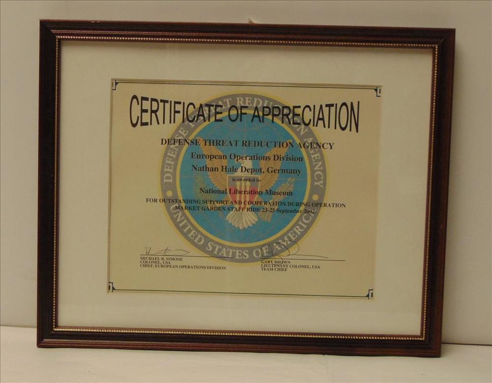 Certificate of Appreciation; Defence Threat Reductio...