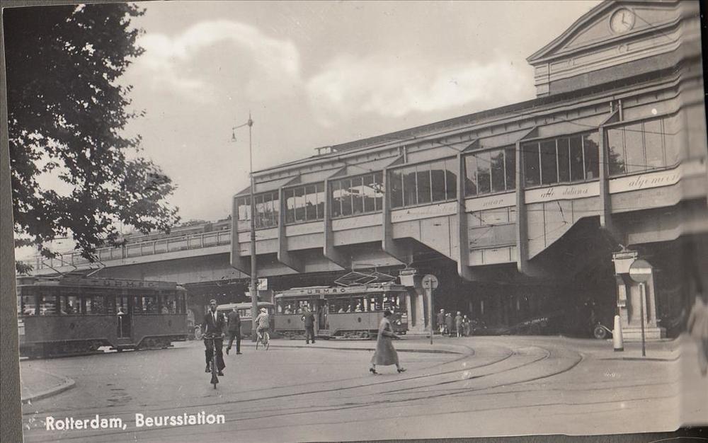 Foto (ansichtkaart) van het Beursstation te Rotterda...