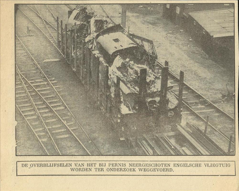 De overblijfselen van het bij Pernis neergeschoten E...