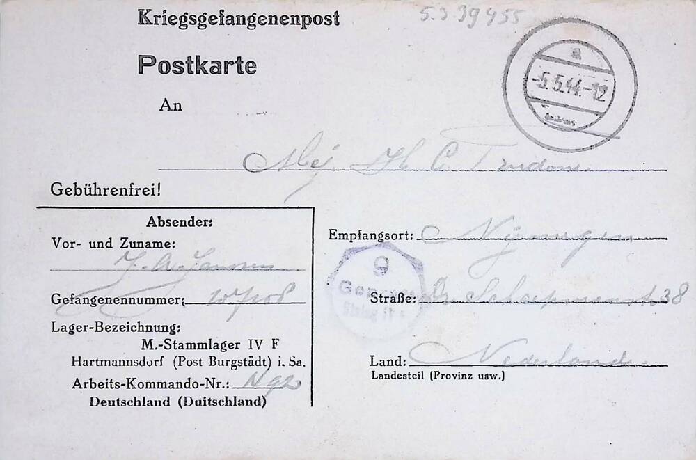 Briefkaart voor Riky Prudon te Nijmegen.