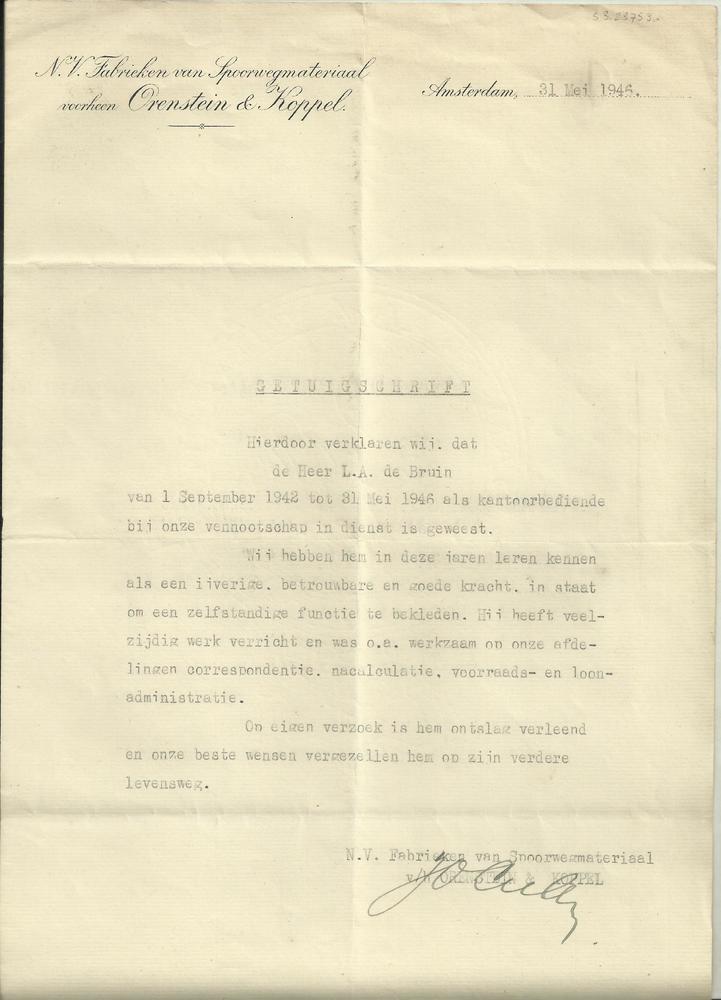 Getuigenverklaring L.A. de Bruin .