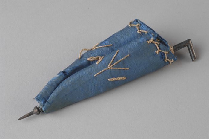 Miniatuur parasol met bekleding van blauwe zijde met...