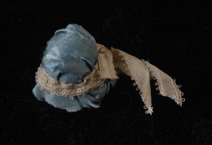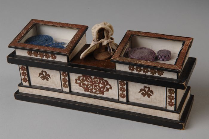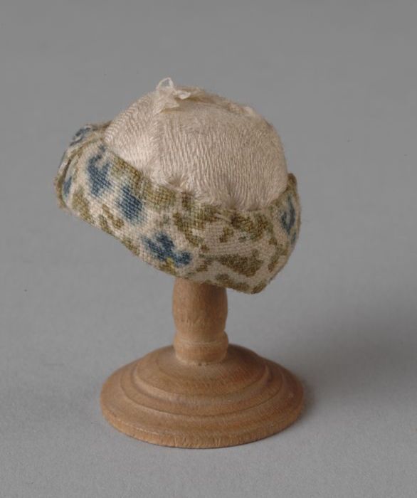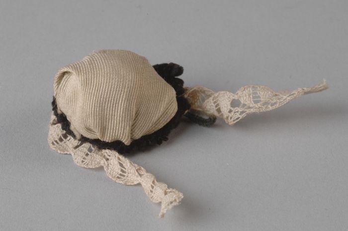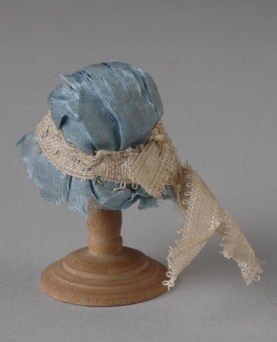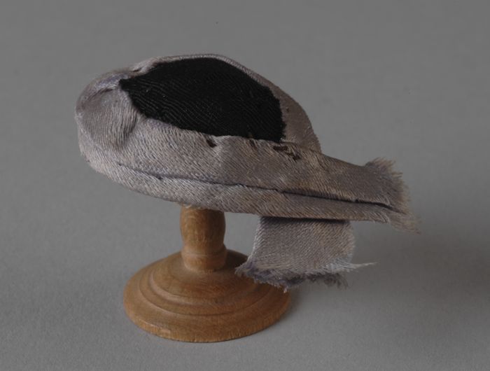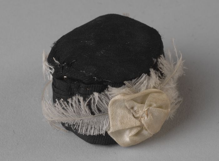 Mini hoed uit rechterdeel kastenwand, dopje wit sati...