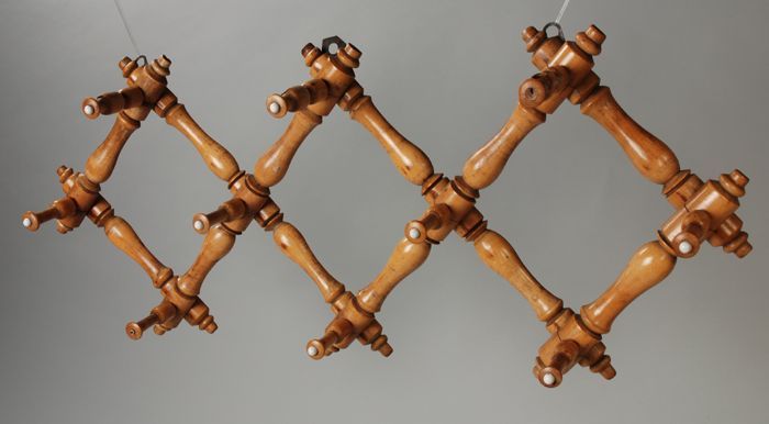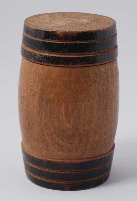Houten miniatuur vat met opgeschilderde zwarte hoepels