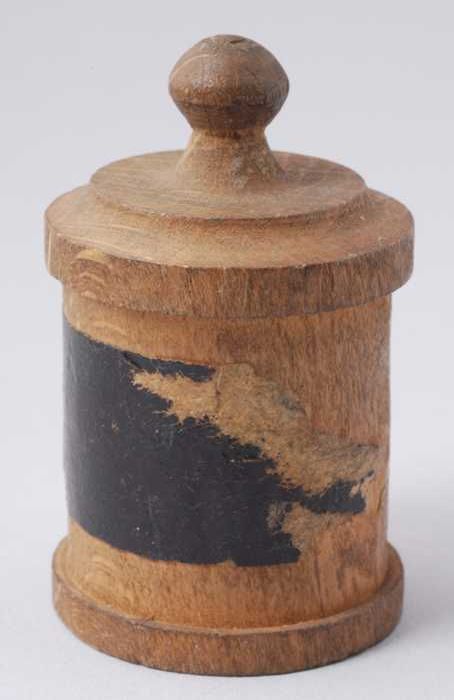 Beukenhouten miniatuur apothekerspot, cilindrische p...