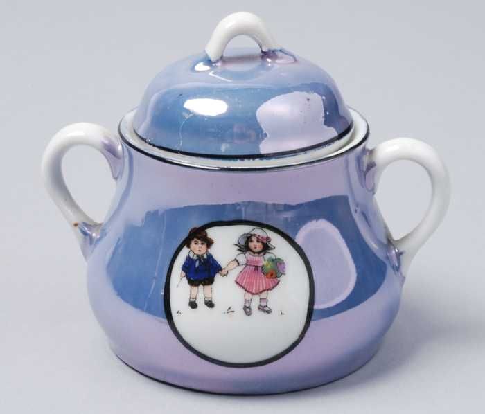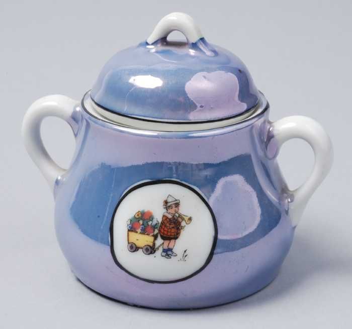 Suikerpotje van blauw parelmoer kinderservies met jo...