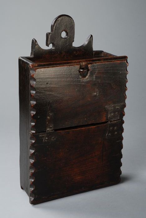Bruine houten 'schooltas' met gekerfde bloemenrand