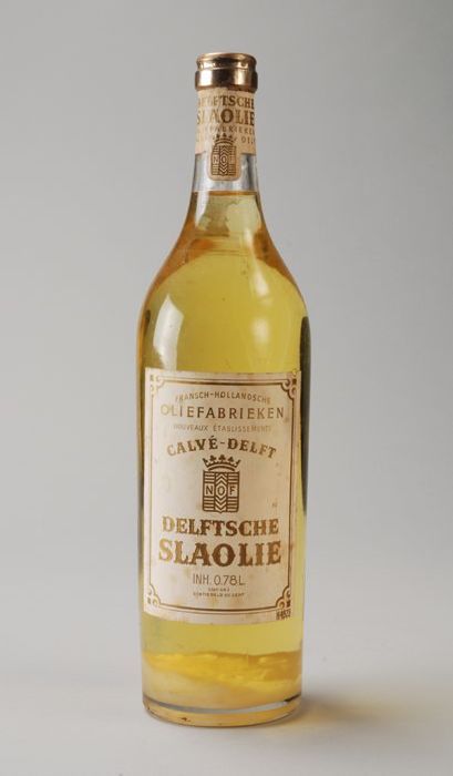 Fles "DELFTSCHE SLAOLIE" met inhoud