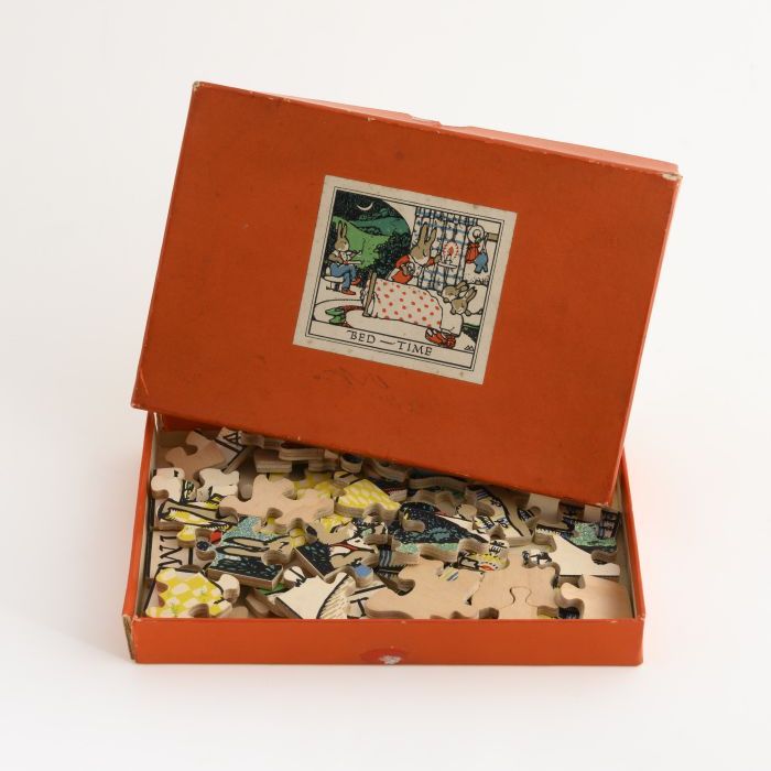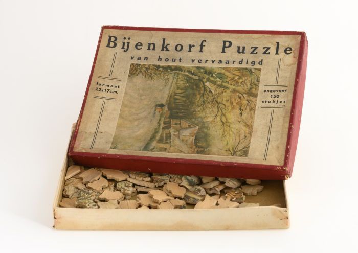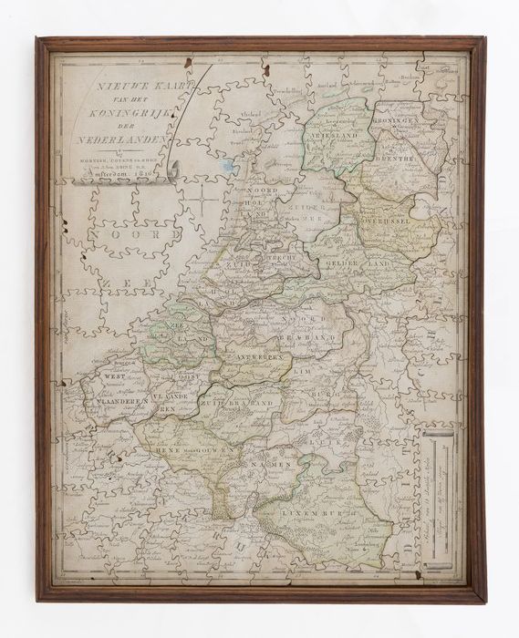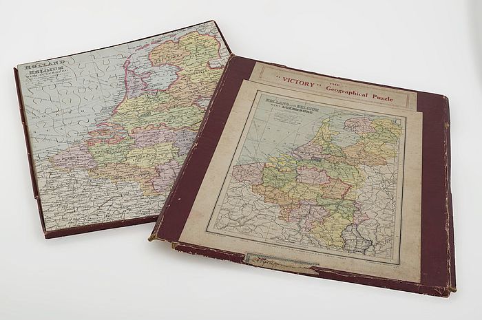 Houten legpuzzel in doos, geografische kaart van Ned...