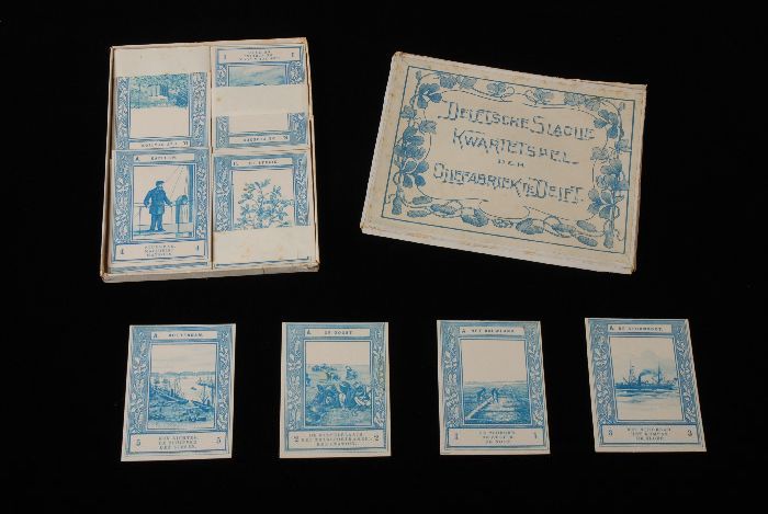 Kwartetspel "Delftsche slaolie" in wit-blauwe doos