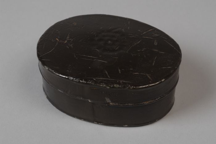 Ovaal blikje met klepdeksel en vakverdeling binnenzi...