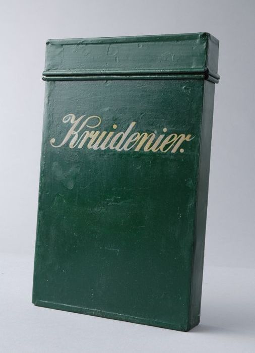 Groen geverfde blikken boekcassette voor boodschappe...