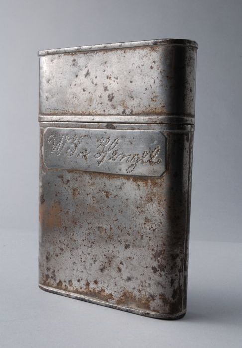 Blikken boekcassette bestaande uit twee delen, ronde...