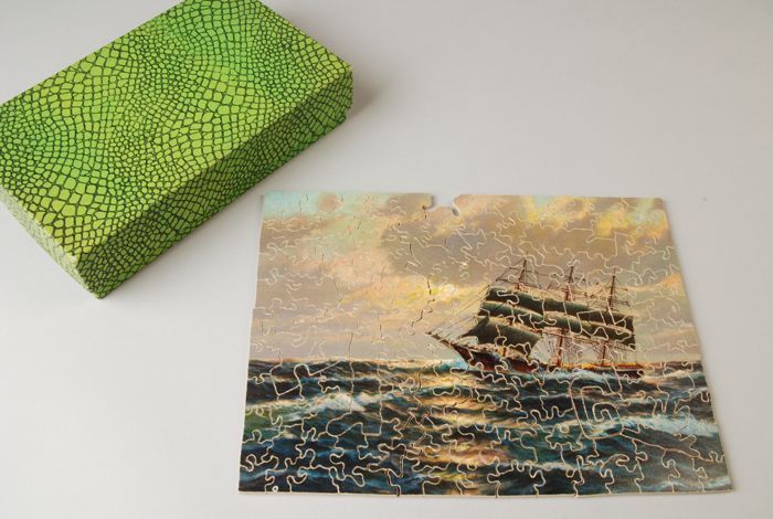 Houten legpuzzel in schuifdoos, geografische "Nieuwe...