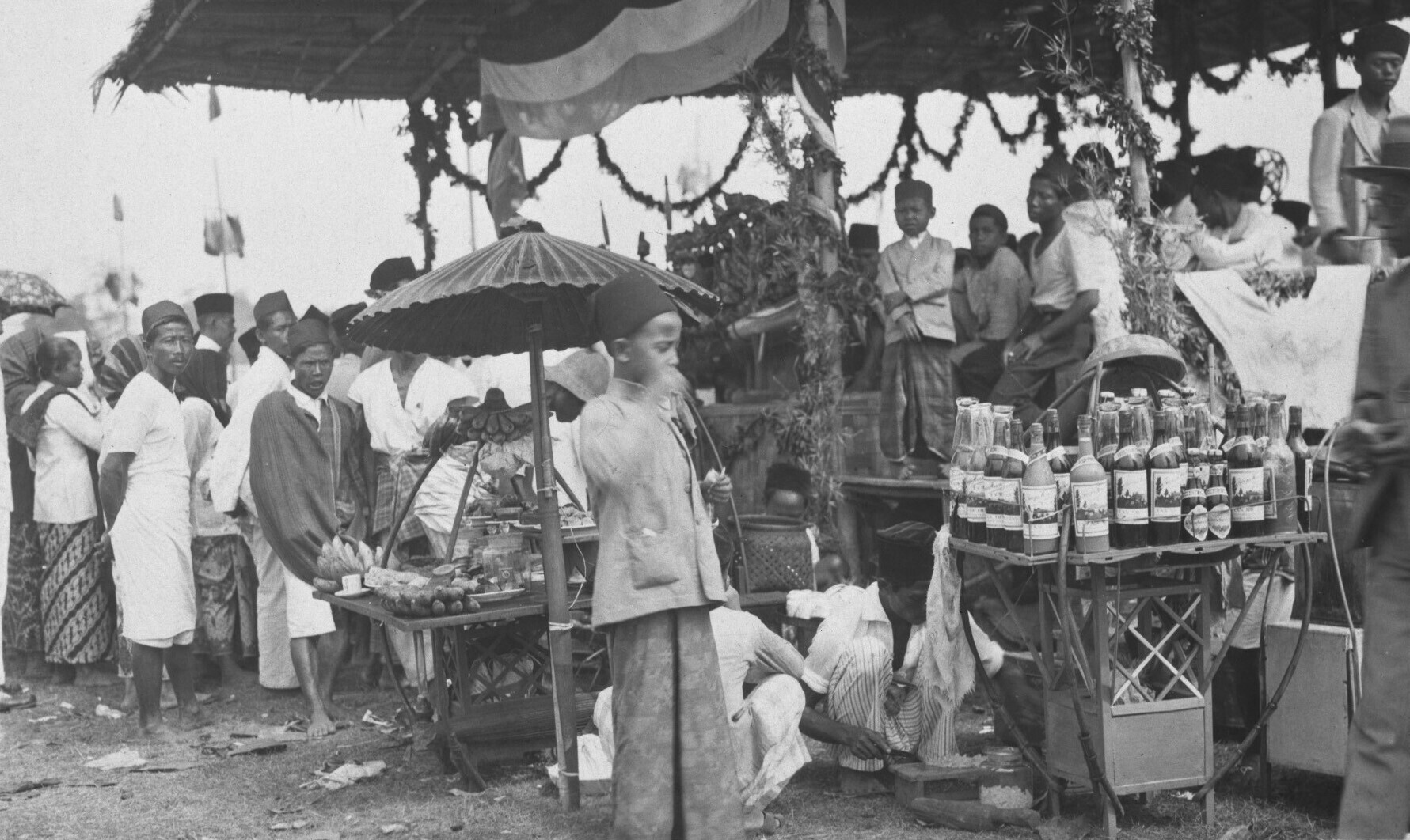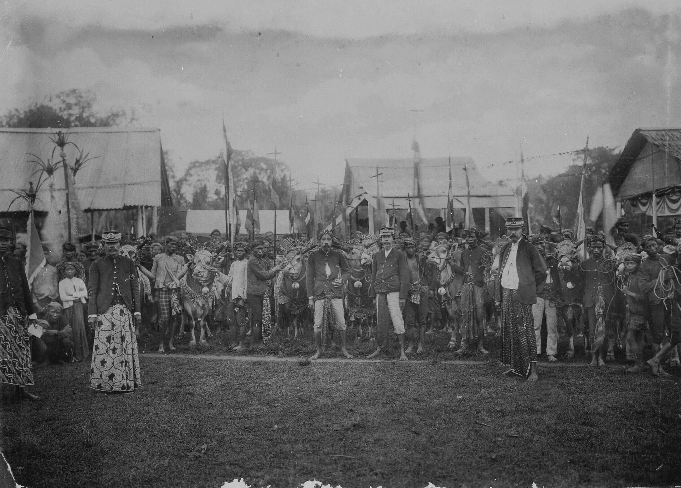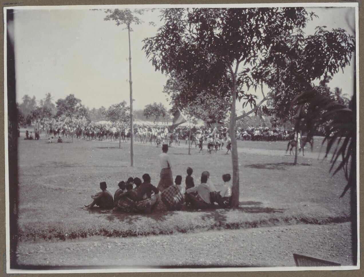 Groep Europese en Javaanse personen bij de bezemwage...