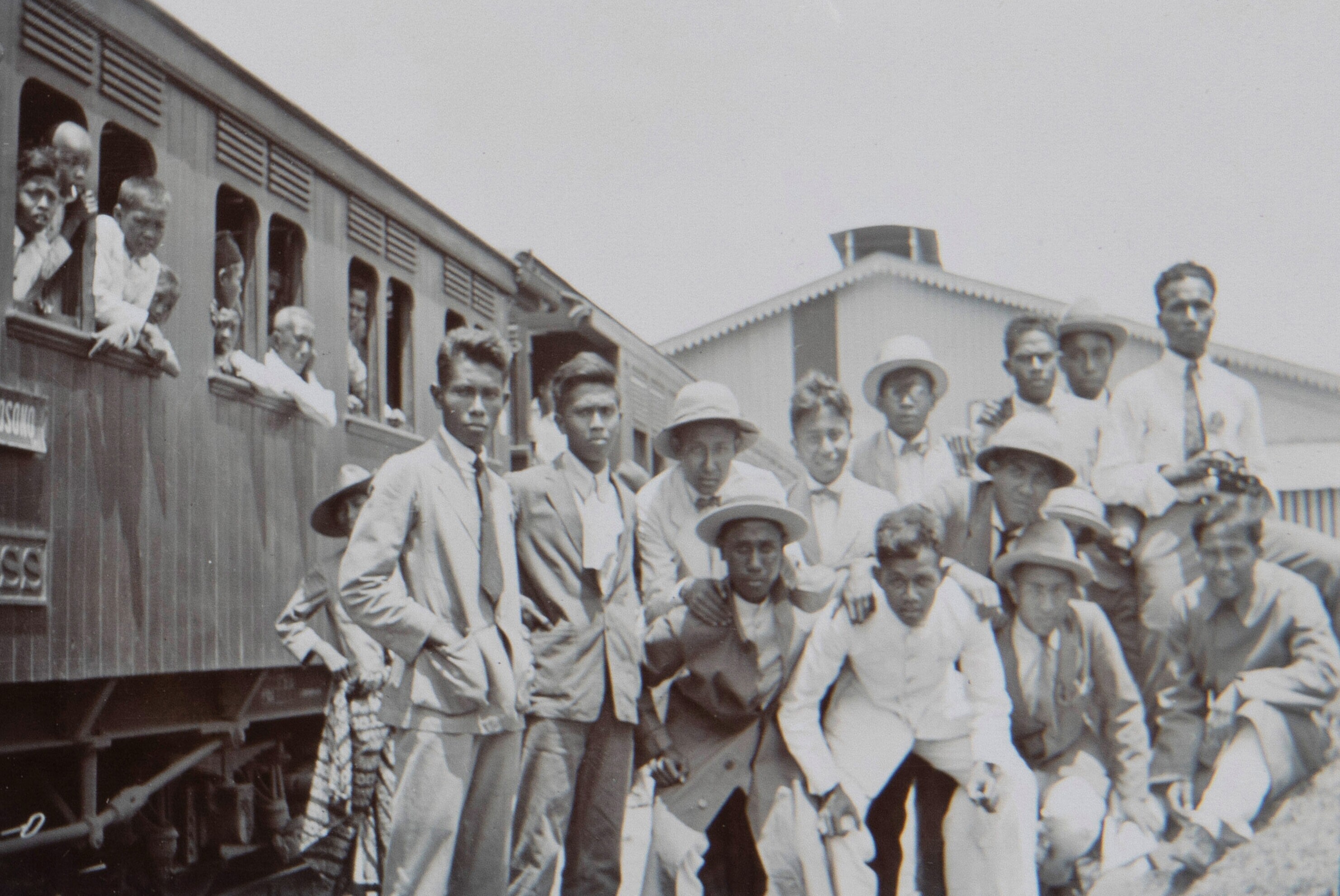 Group portrait at the railway station with students ...