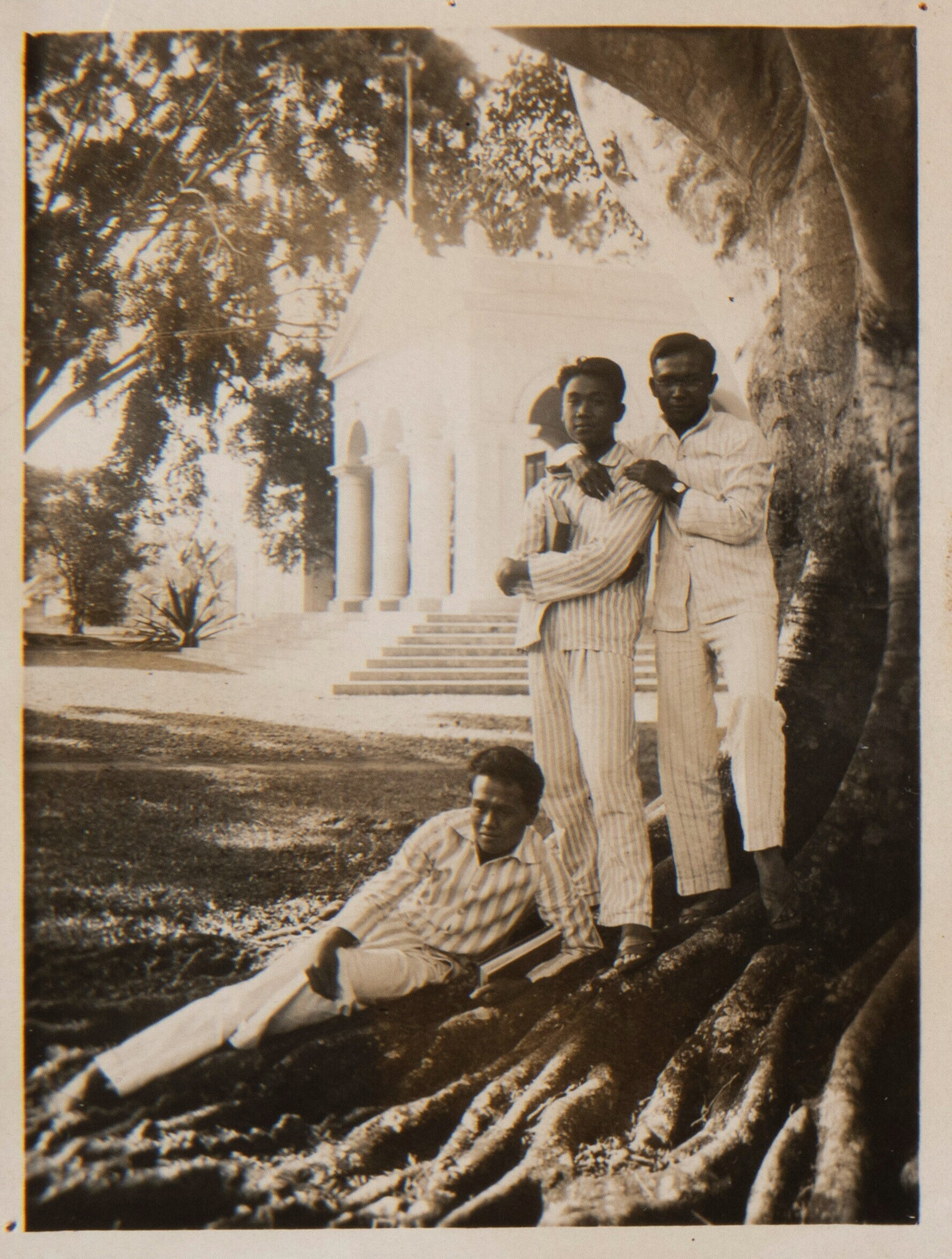 Portrait of students under a tree beside the 'Hogere...
