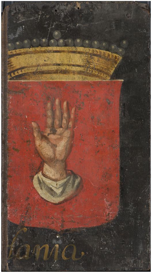 Rechterhelft van een wapenbord met de naam ...ania