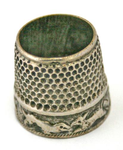 Priem. Naaipriem met oog in schede. Met rank en stip...