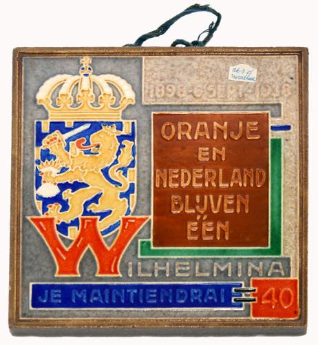 Cloisonné tegel. Koninklijk Huis Koningin Wilhelmina...