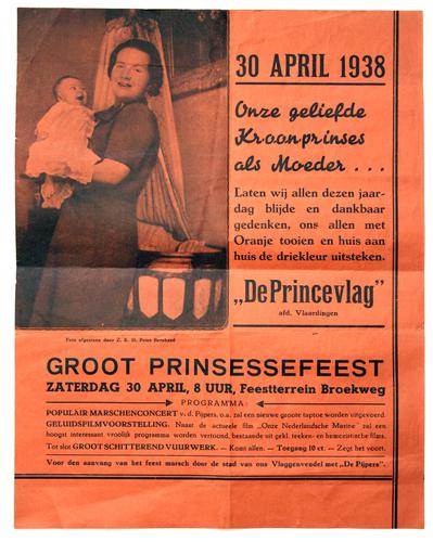 Pamflet aankondiging Prinsessefeest, Vereniging 'De ...