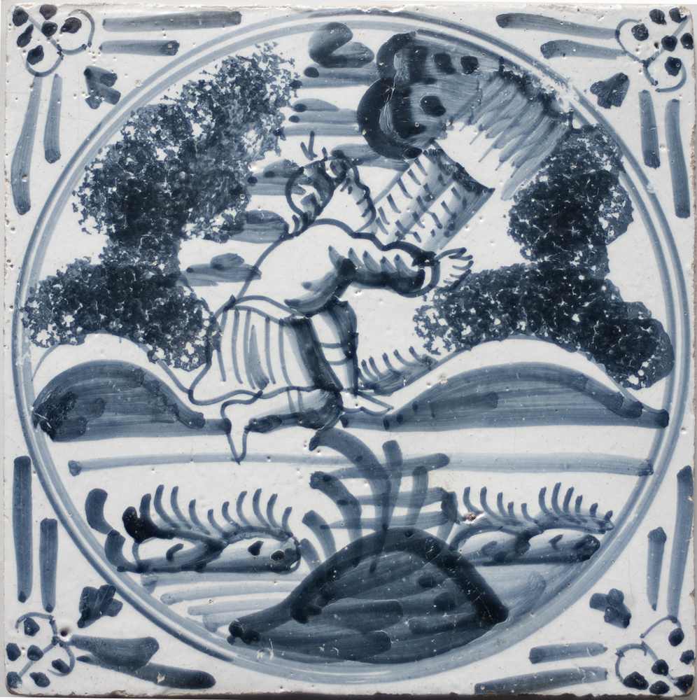 tegel van keramiek met tinglazuur, voorstellende: Lo...