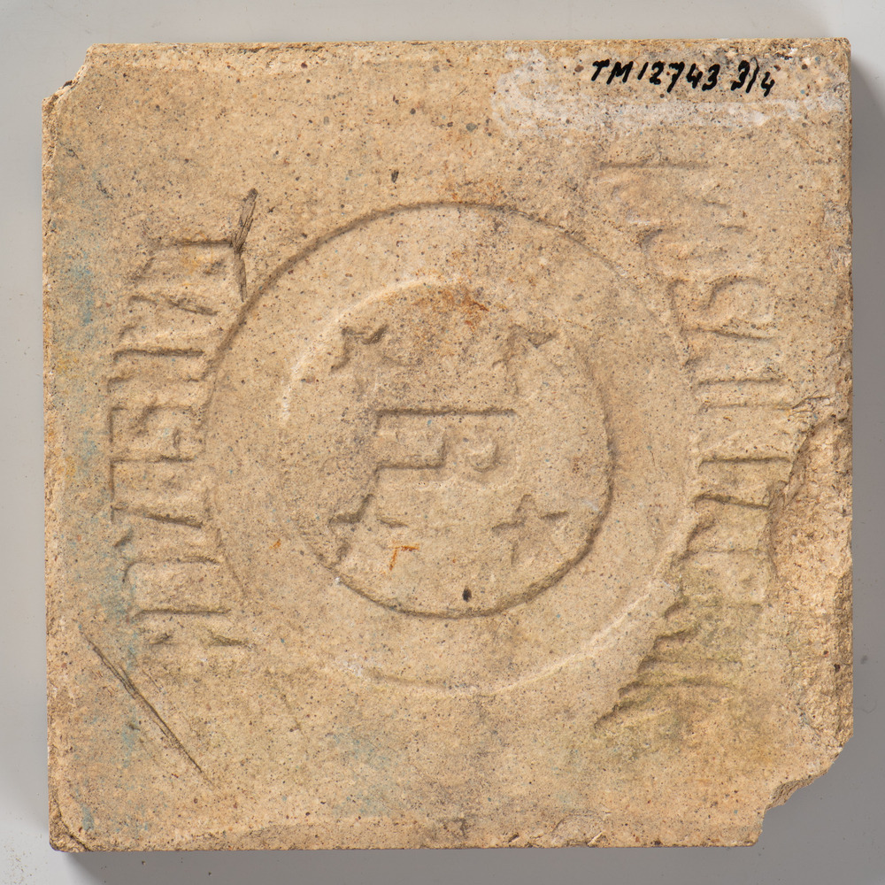 randtegel van keramiek met tinglazuur, voorstellende...