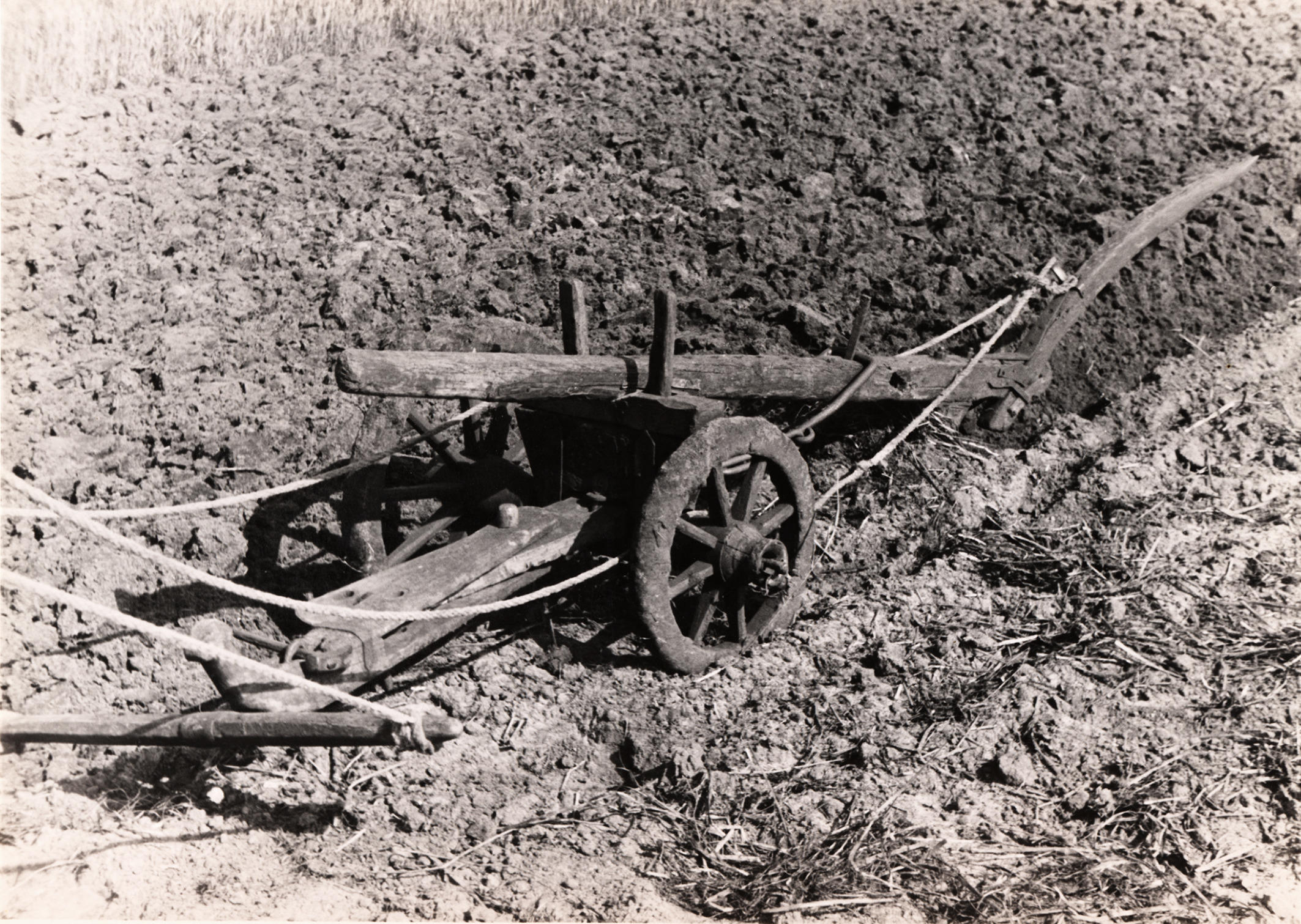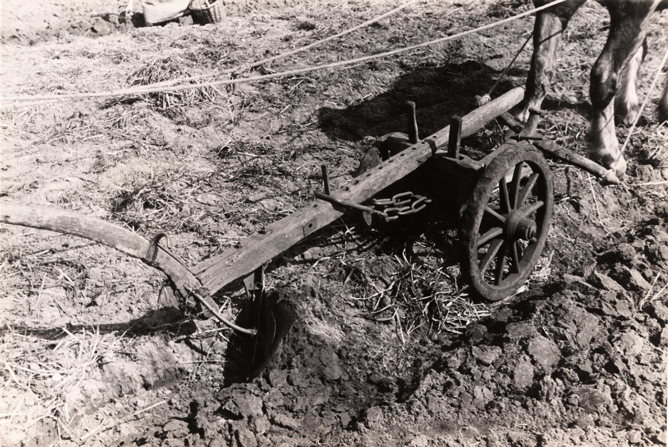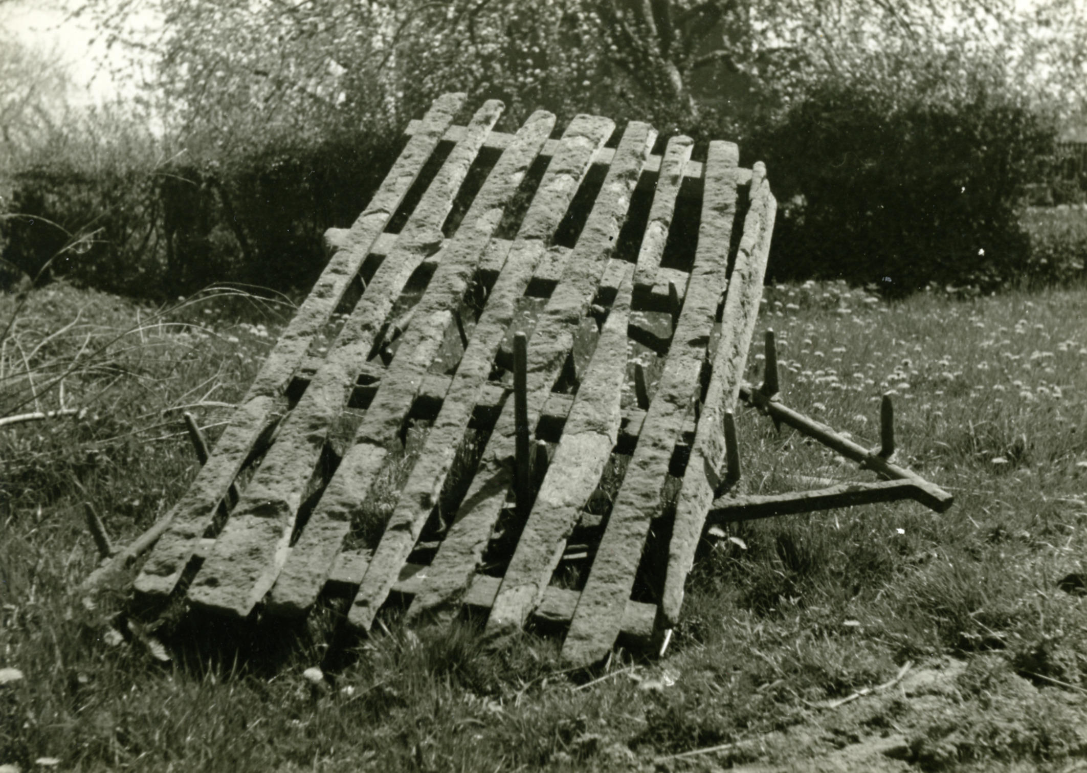 Houten stelploeg, Staphorst, 1944 (zwart-wit foto)