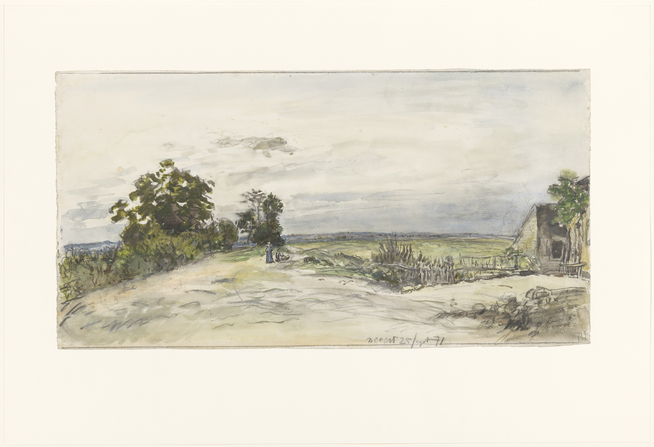 Landschap met ploegende boer
