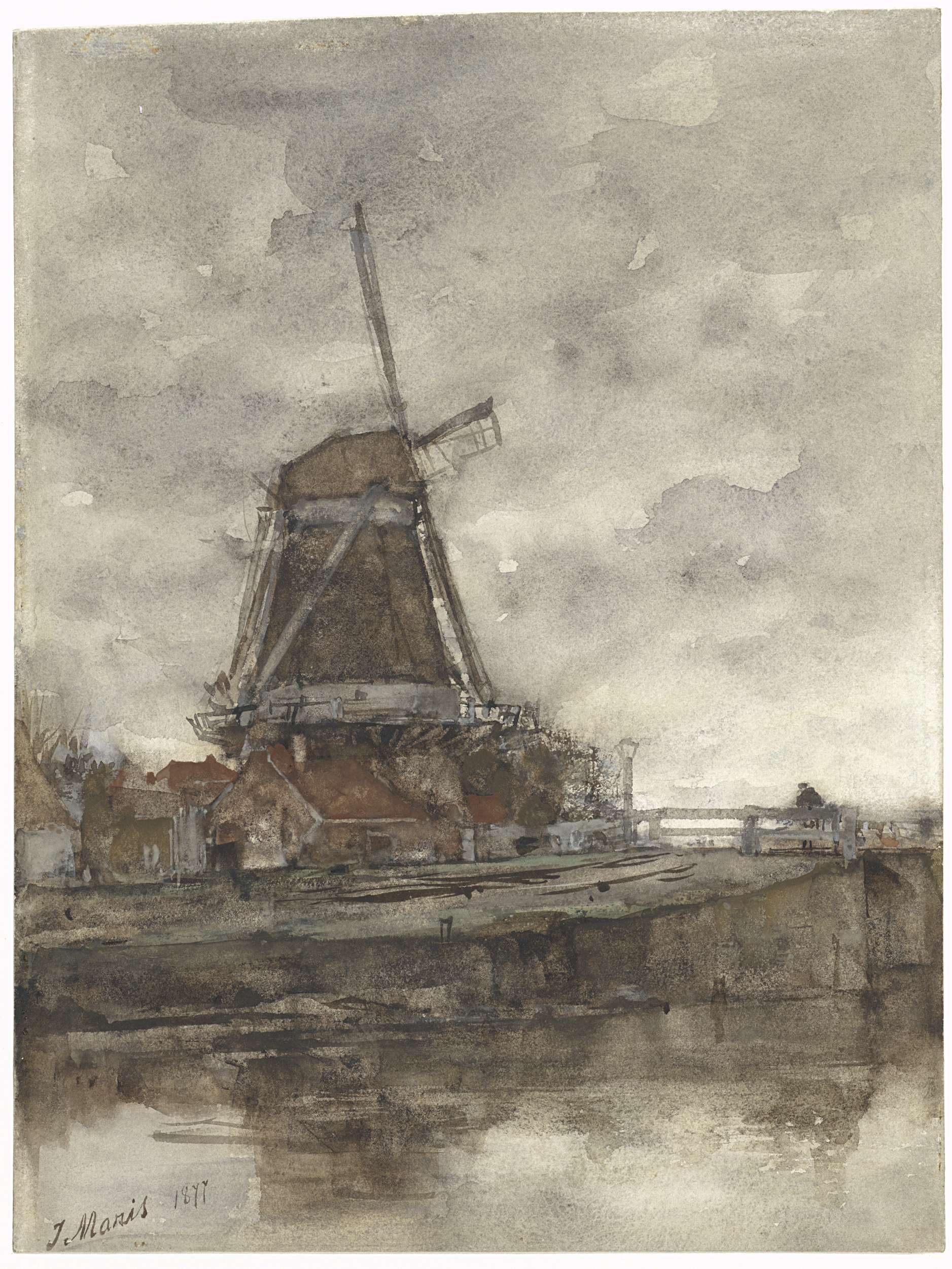 Molen en de brug bij de Noord-West-Buitensingel in D...