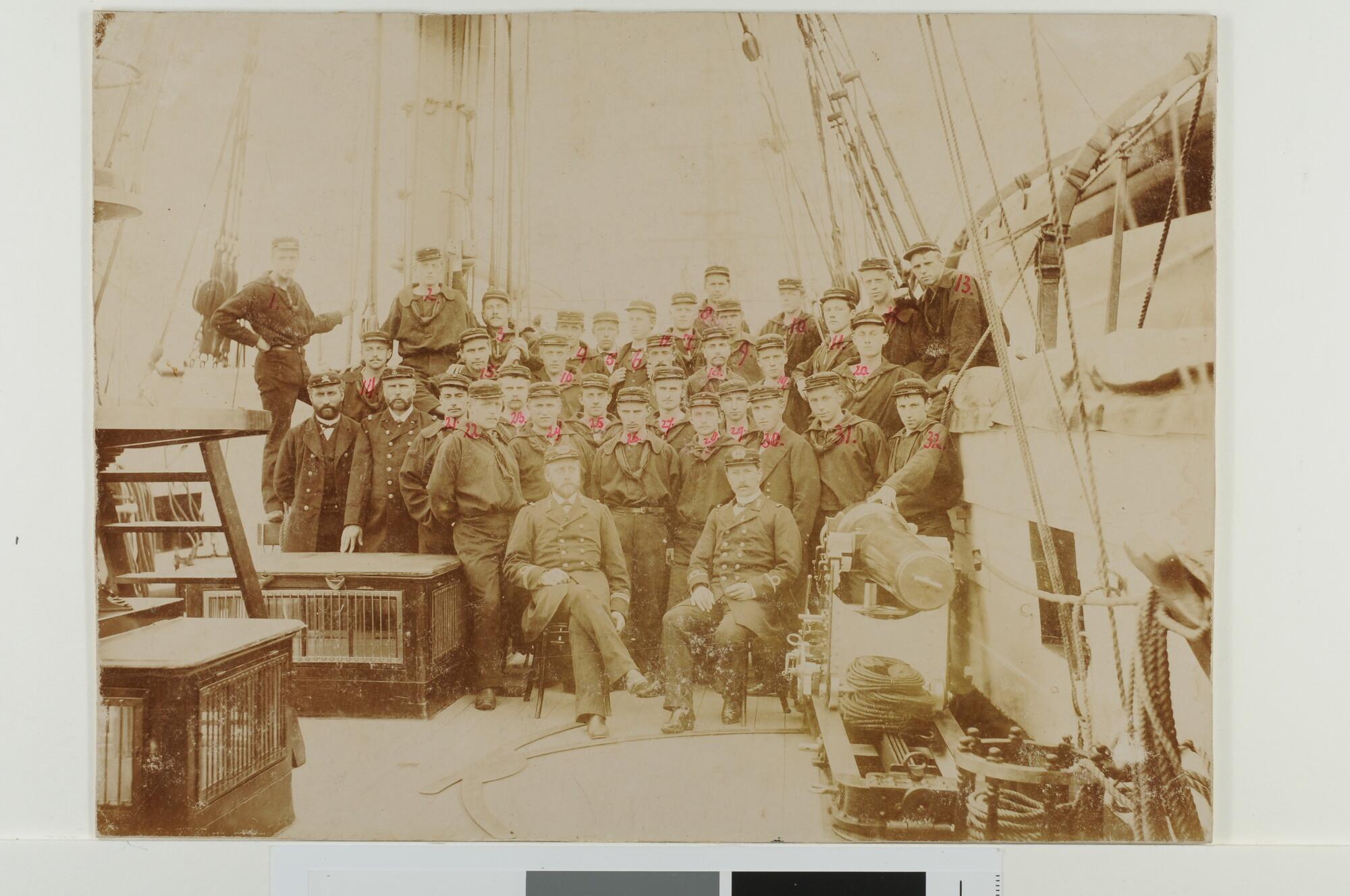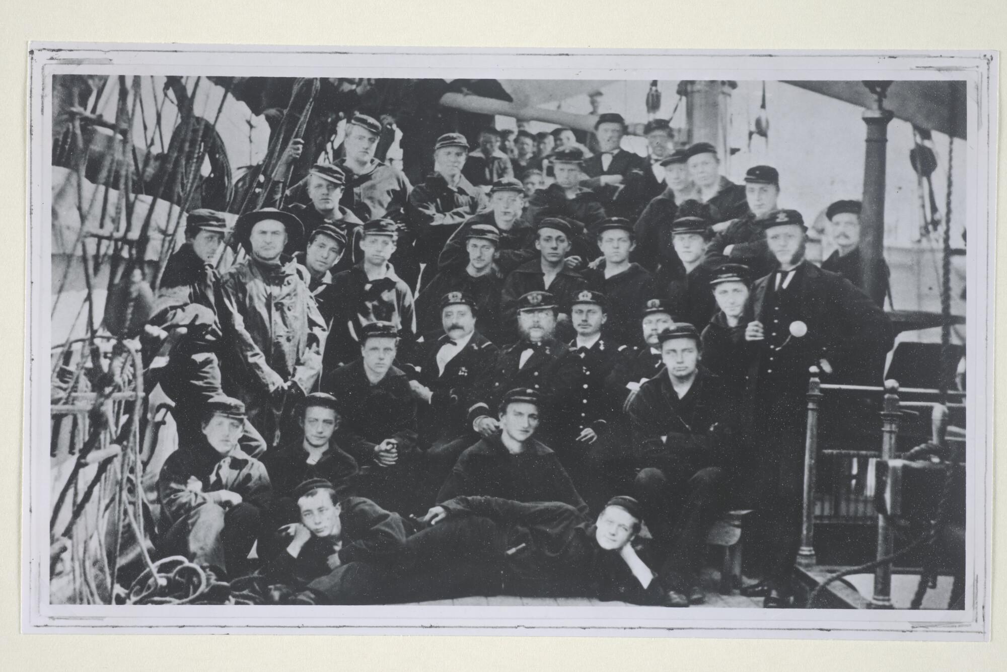 Groepsportret van kapitein Braad, de kapitein van de...