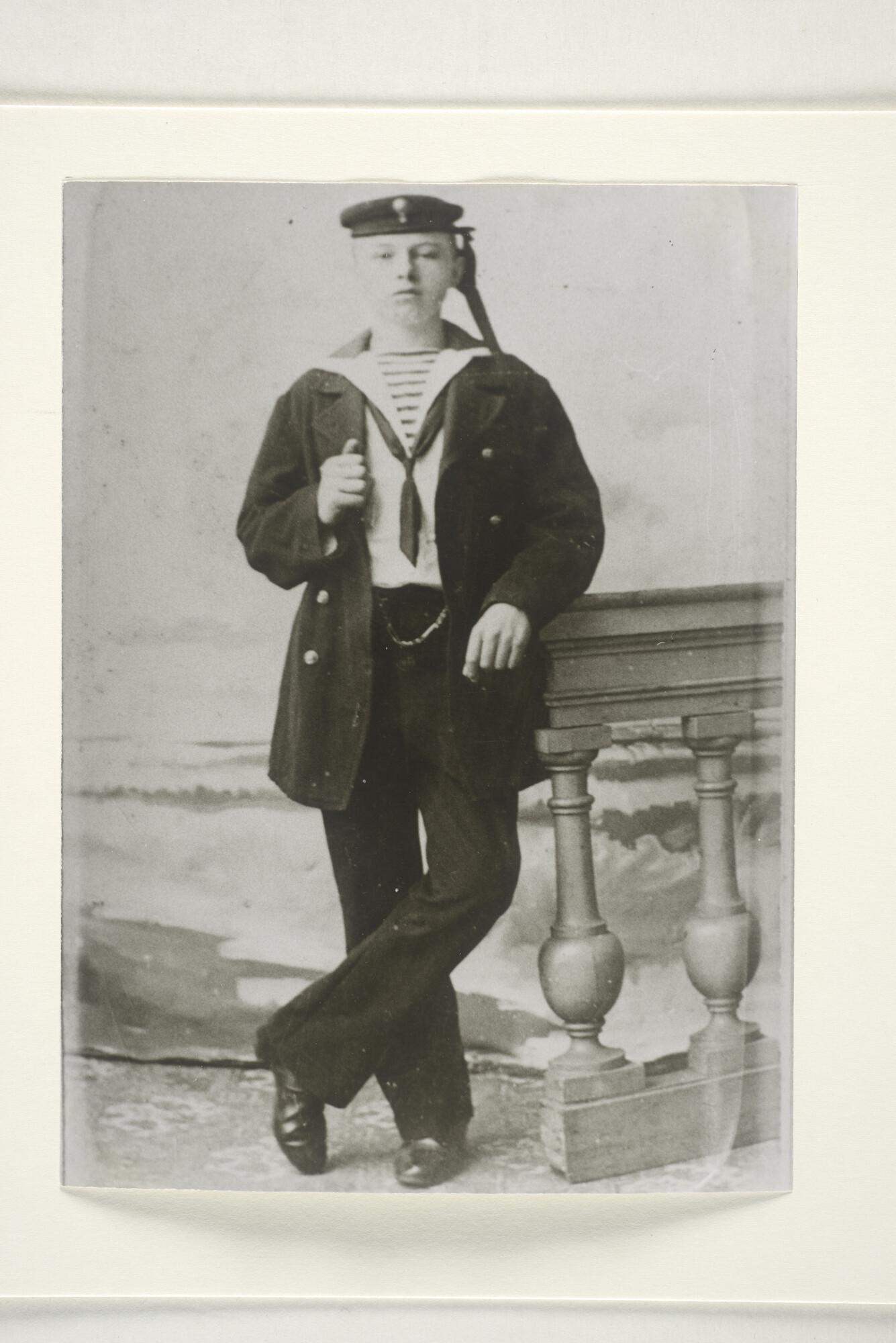 Portretfoto van J.R. Brouwer 1e stuurman onder kapit...