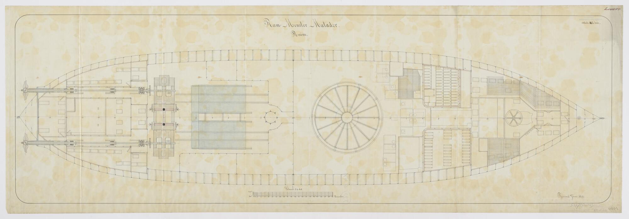 Langsdoorsnede boven de waterlijn van de rammonitor ...